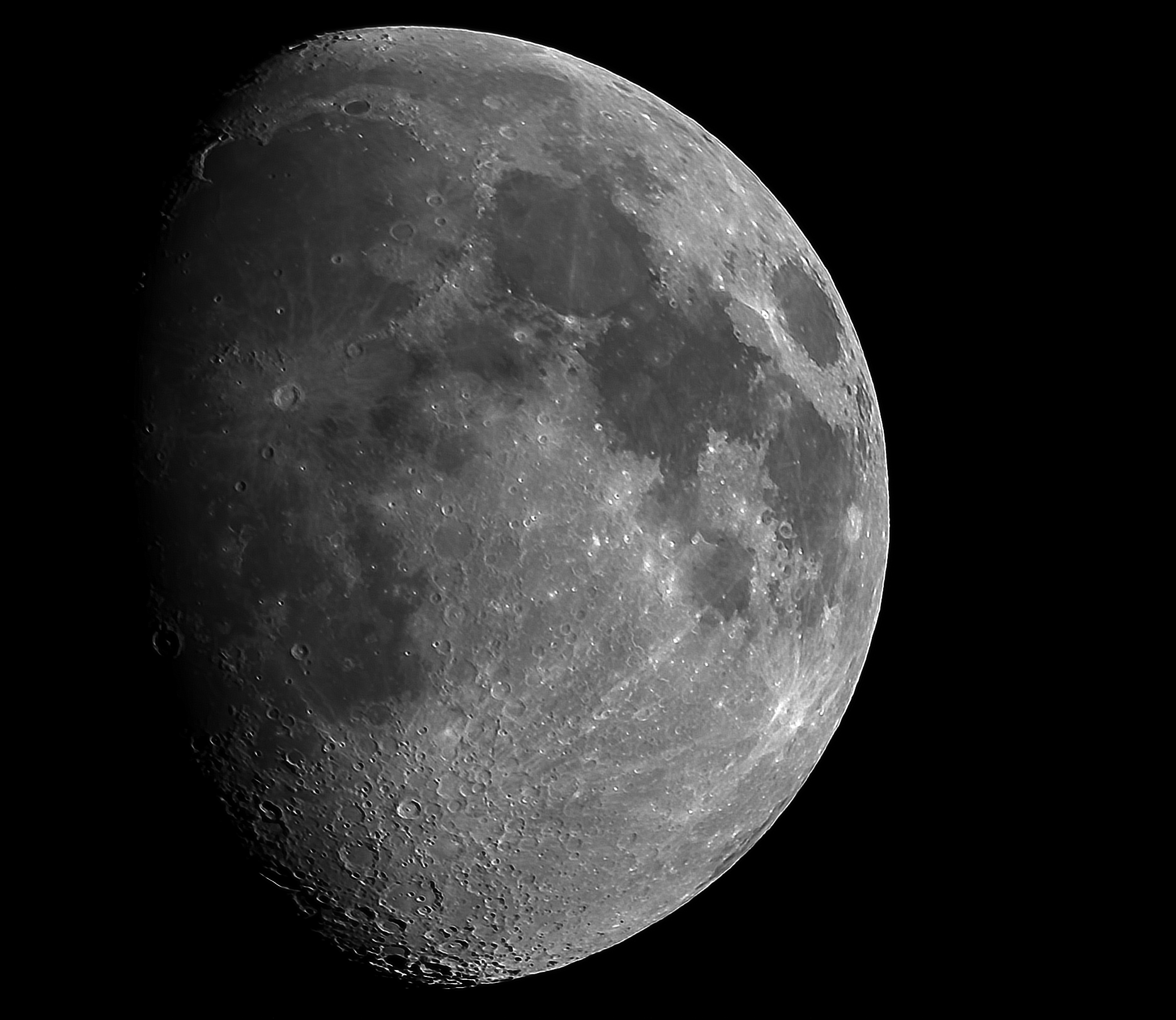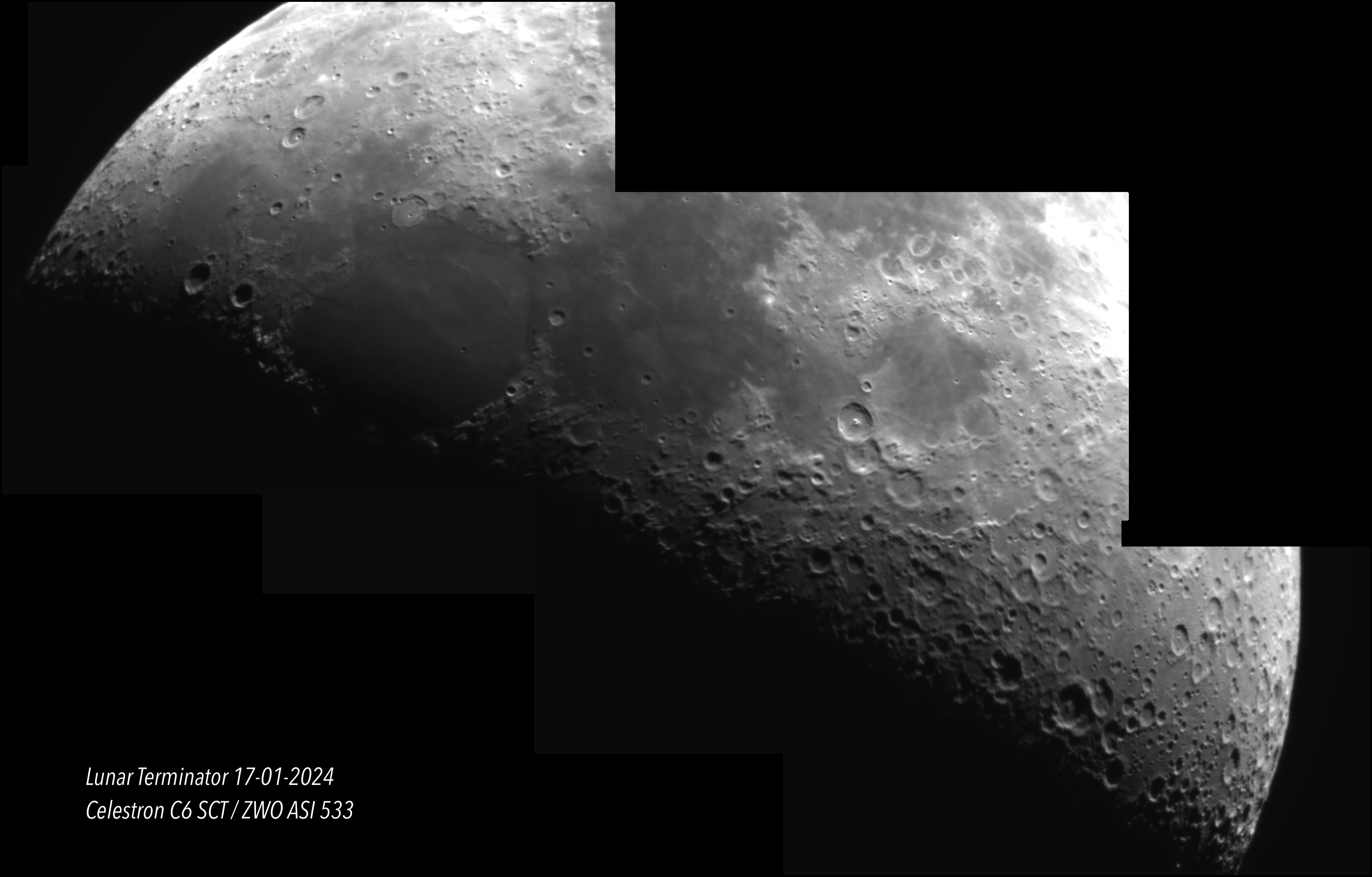 Our nearest neighbour the Moon has played an integral role in all cultures throughout time. Part of the celestial timepiece that marks the progression of the year and the seasons it affects the whole natural world with both its illumination and it's gravitational hold on our ocean tides. Possibly the most obviously dynamic feature of the night sky it's bright reflection of sunlight when in its fuller phases plays havoc with astronomy when observing or photographing the rest of the sky but in itself it provides a fascinating target especially when the terminator gives contrast and relief to surface features as it sweeps through the phases.