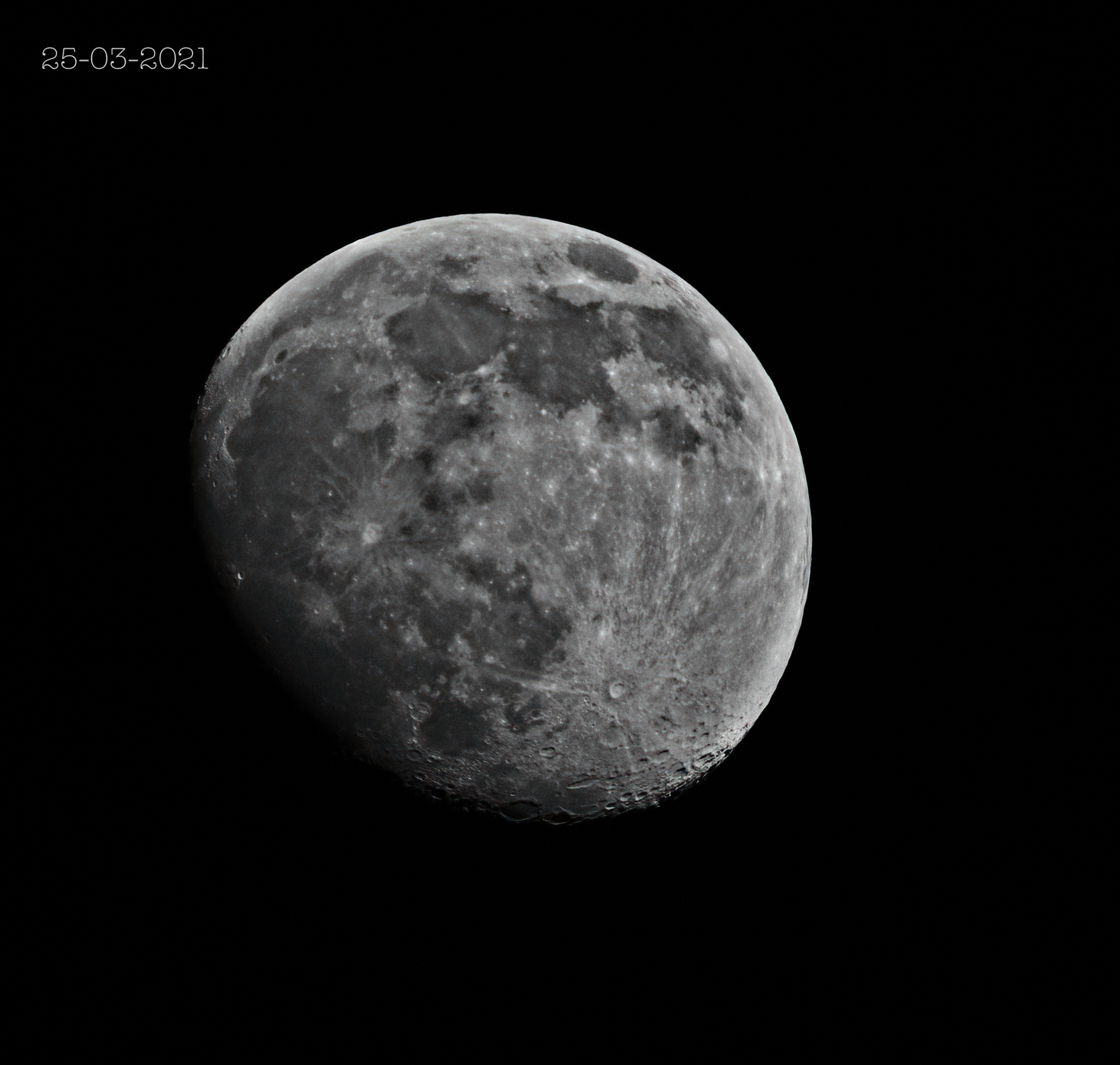 To get good views of surface details you need a reasonably long focal length scope or camera lens. I tend to use my Sigma 150-600mm camera lens with a 2x teleconverter to give a focal length of up to 1200mm. In addition it may be useful to add in a specific moon or ND filter to cut down on glare and improve contrast, it is after all a pretty bright object compared with the rest of the night sky.