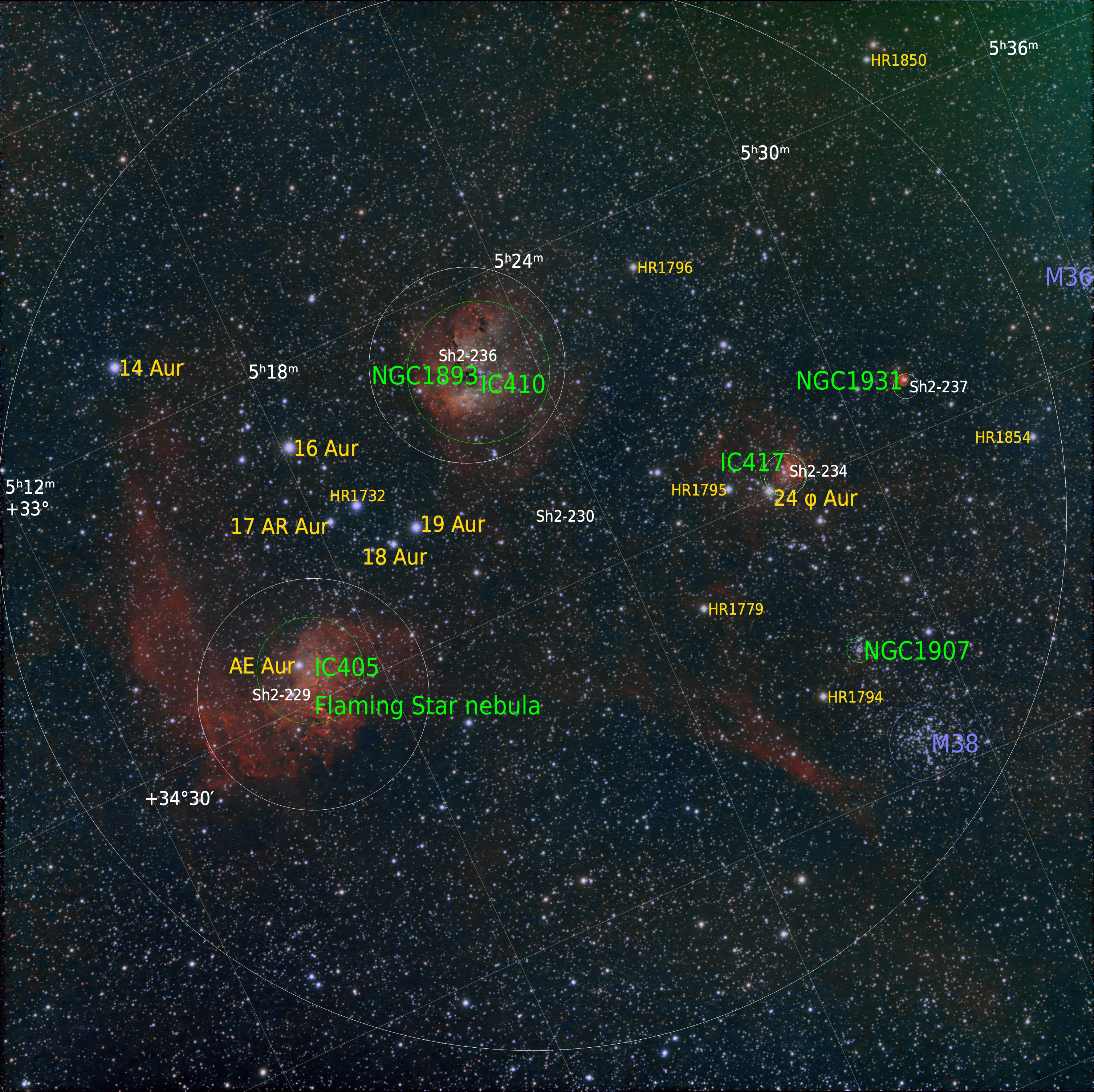Observation Date: 15-12-2022 Scope: Samyang 135mm ƒ2 Camera: ASI533 MC Pro Mount: iEXOS-100 PMC8 Control: ASIAir Pro Filter: Altair Quadband Exposure: 18000s but at ƒ11 by accident. Processed & Annotated: APP (Hα & Oiii), Pixinsight
