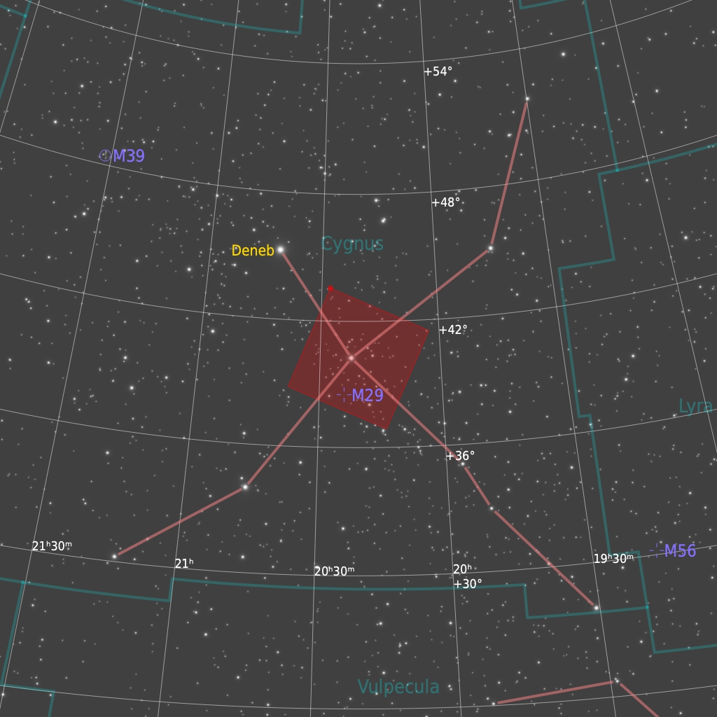 These images of the SADR Region also show the M29 open cluster and the Crescent Nebula NGC 6888.
